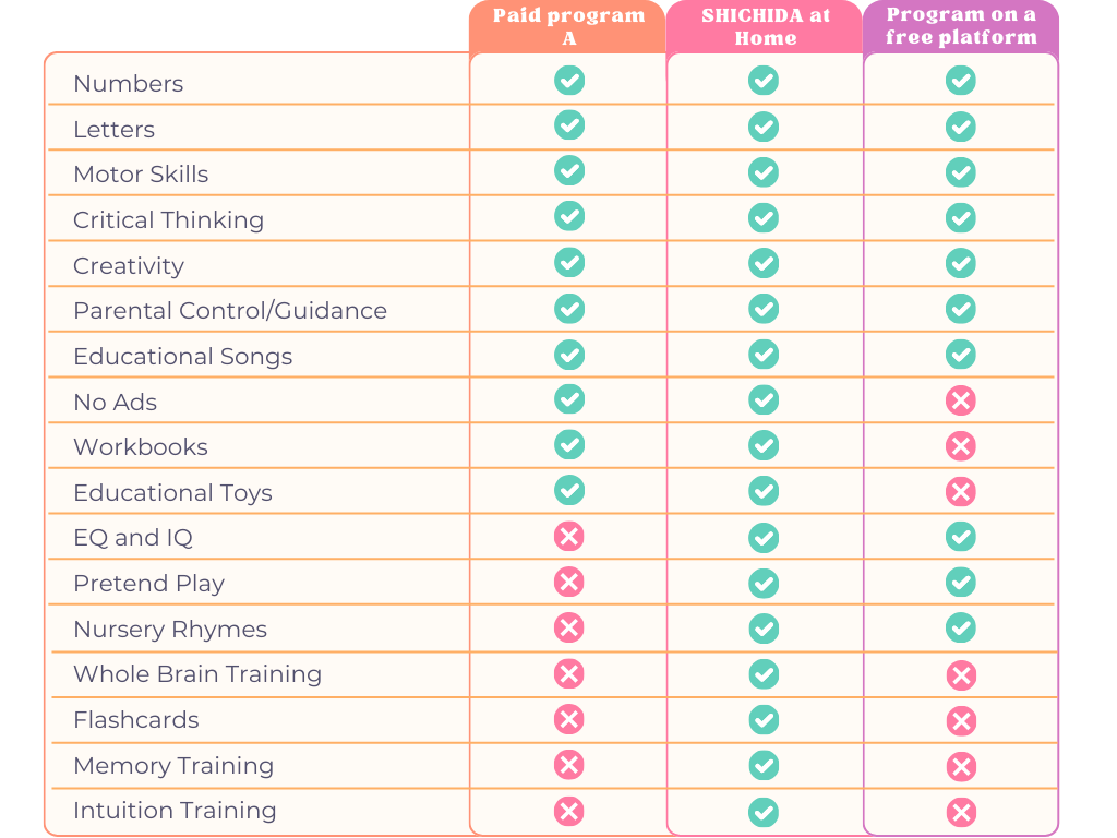 Unlike other learning apps and programs, SHICHIDA at Home is designed for hands-on involvement from parents which encourages parent-child bonding and promotes a love of learning.